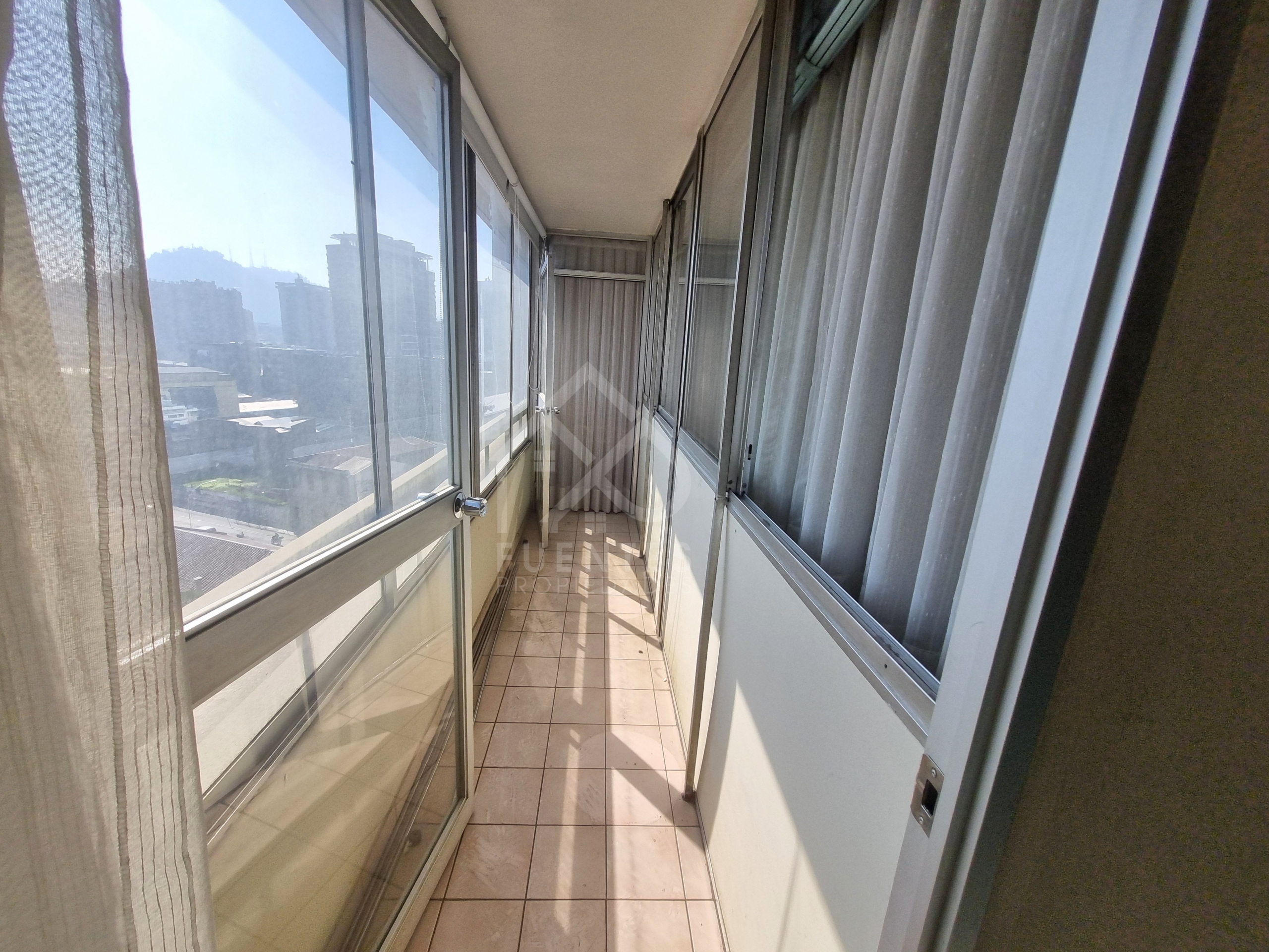 9 m2 de terraza vista hacia el norte, con ventanal remodelado y piso cerámico.