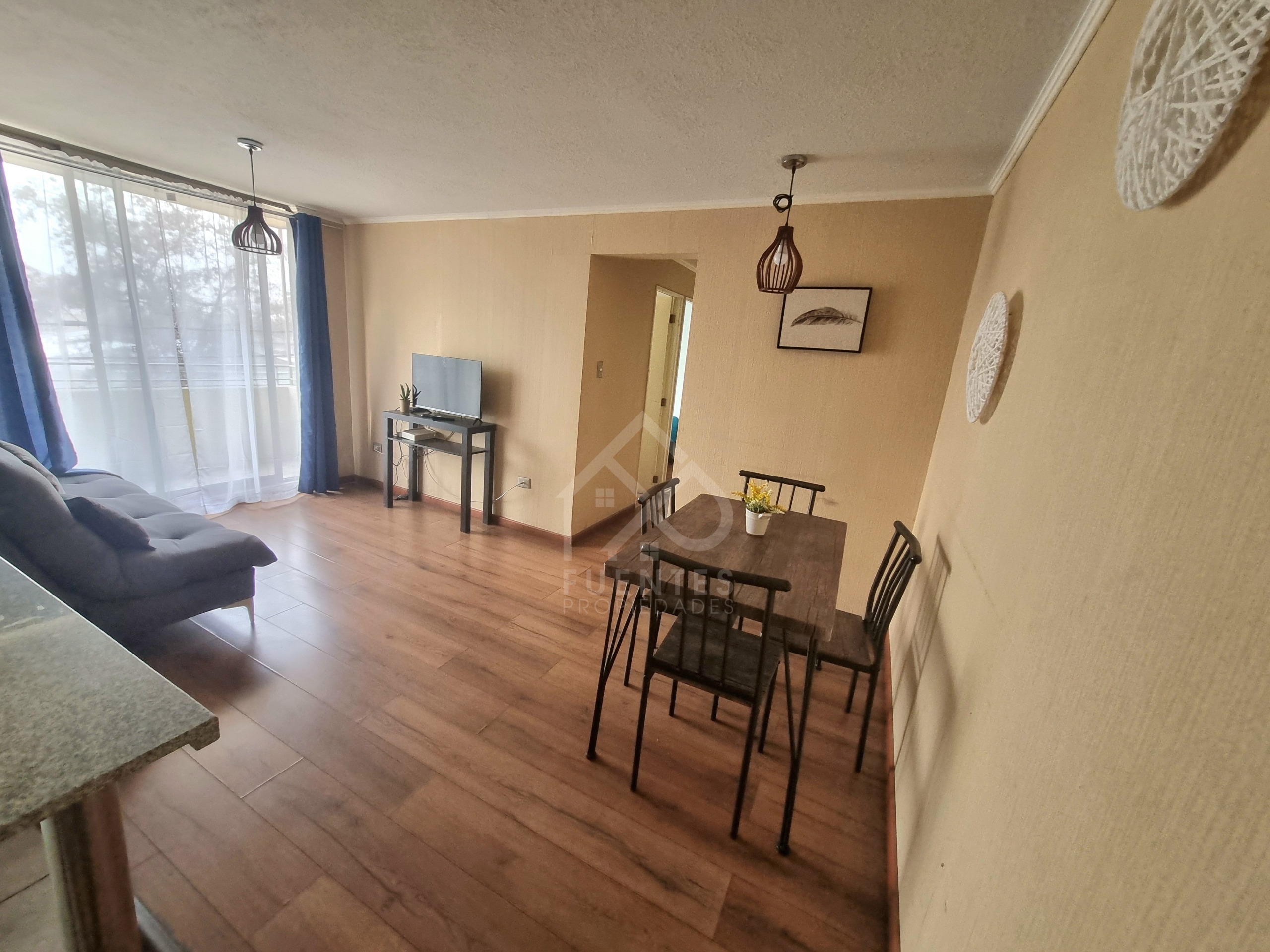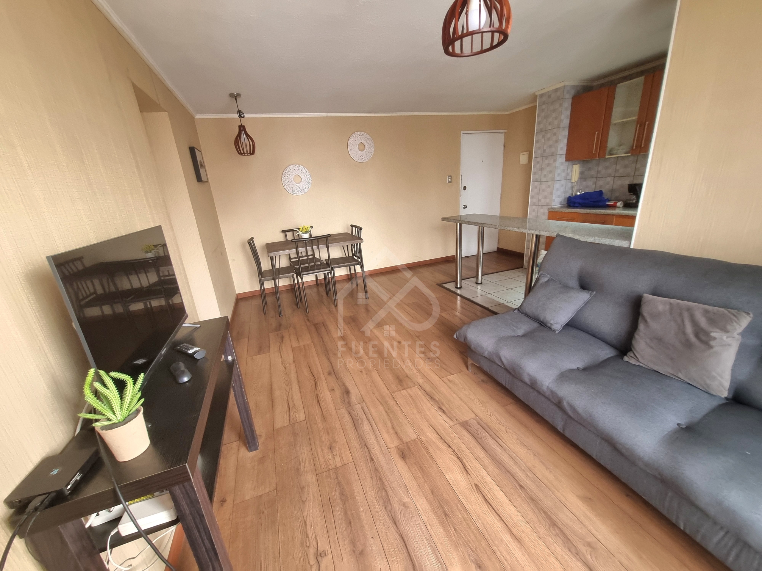 Espacioso living comedor con salida a terraza, 3 dormitorios con closet, 2 baños completos, cocina semi abierta tipo isla, full amoblada, mesón de granito, conexión a gas por cañeria. Un dormitorio pequeño adicional ideal para walk in closet.