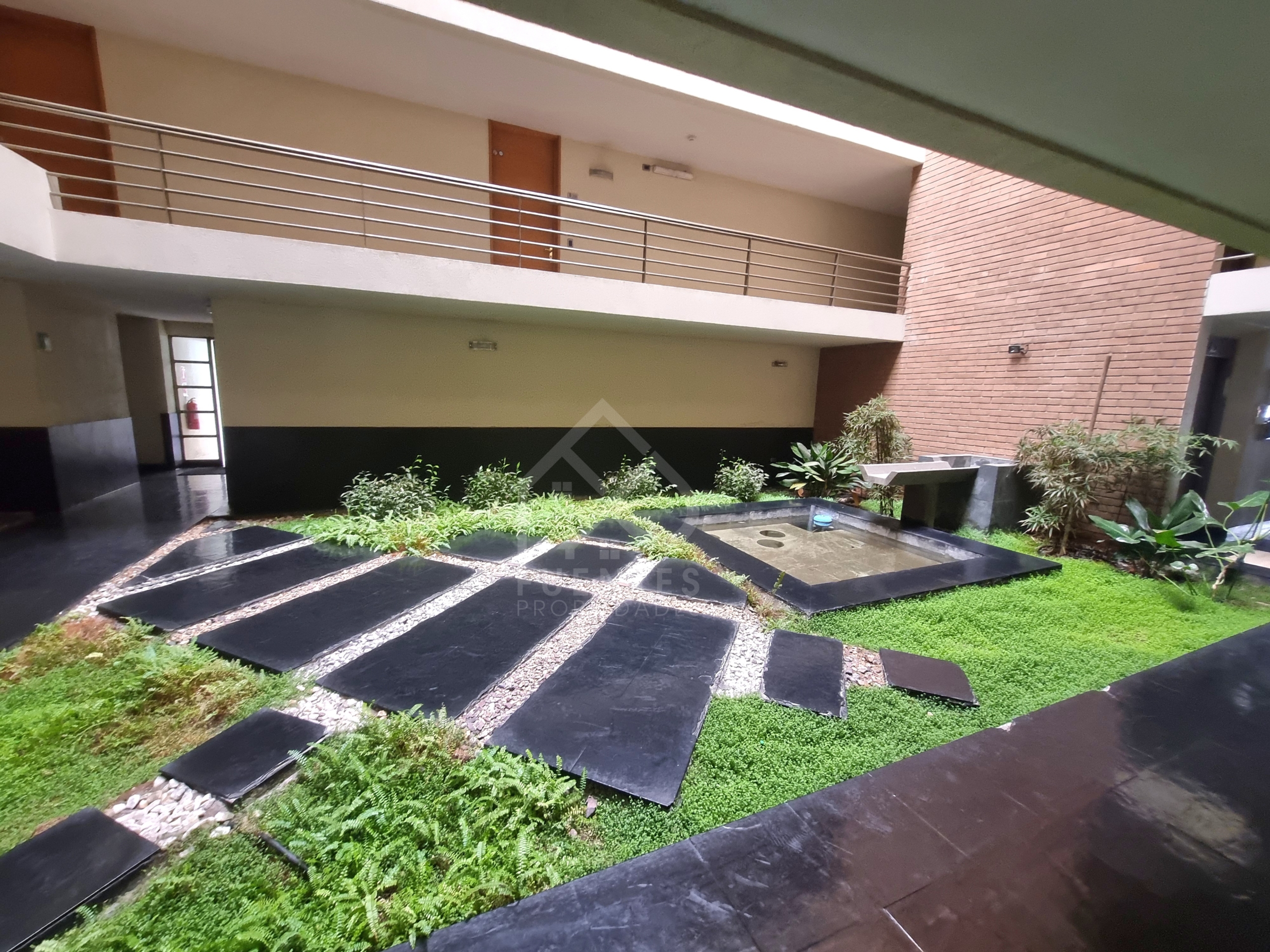 El condominio cuenta con recepción y conserjería 24/7, ascensor, espaciosa sala de eventos con vista al exterior, juegos infantiles, piscina, áreas verdes, y estacionamiento de visitas